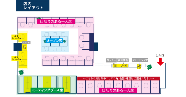 一部の席は集中エリアのため通話禁止とさせていただいております。