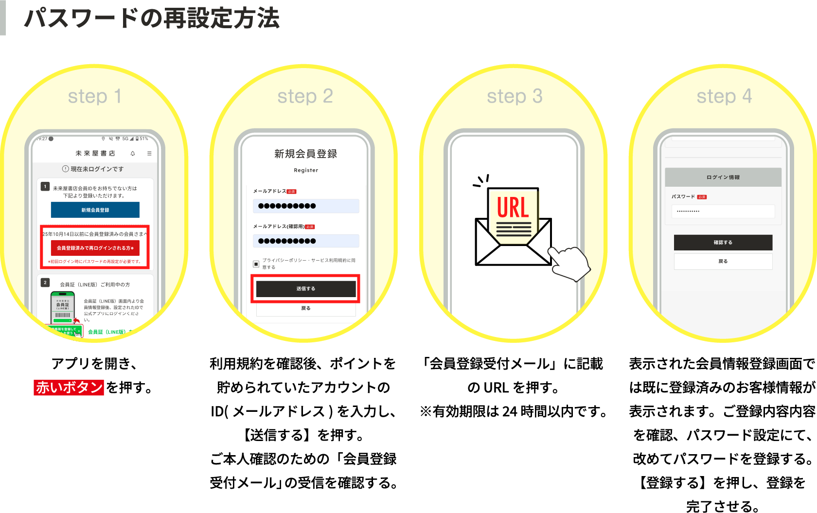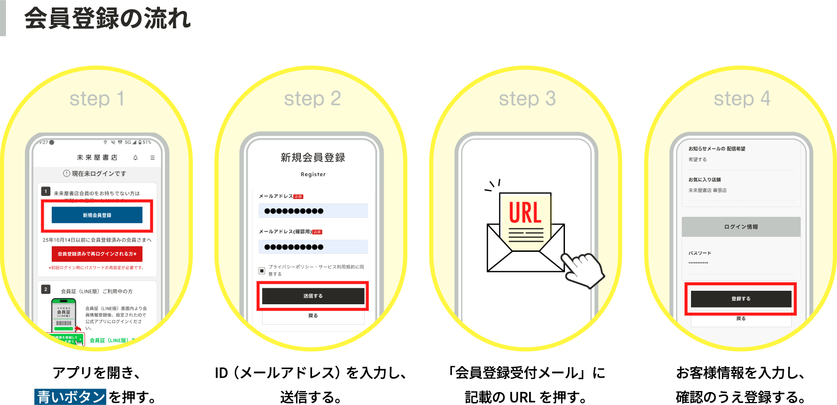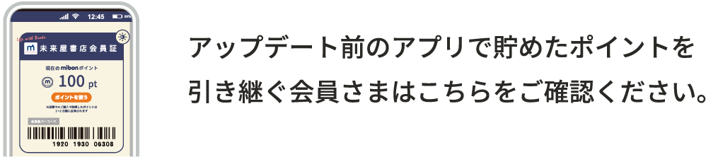 保有ポイント数・それぞれの獲得ポイントの有効期限は未来屋書店公式アプリのポイント履歴にてご確認いただけます。